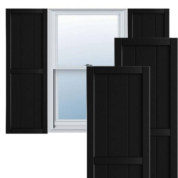21-1/2 in. x 62 in. True Fit PVC 4-Board Framed Board and Batten Shutters in Black (Per Pair)