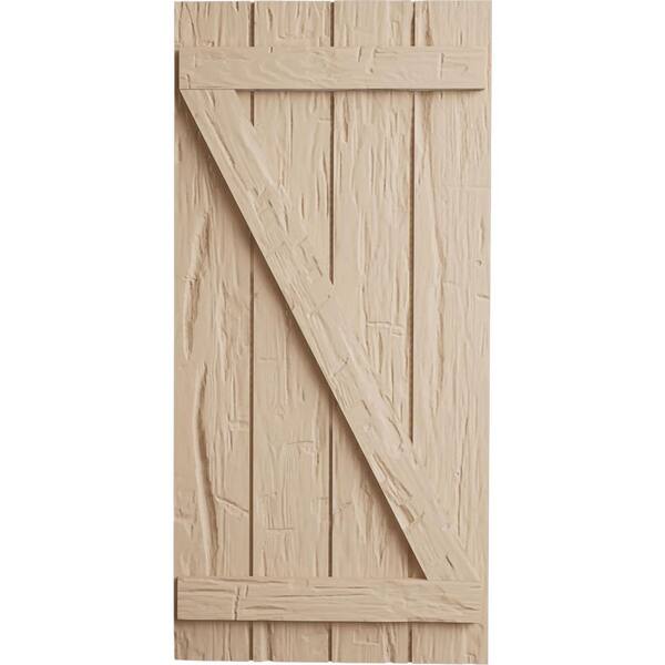 22 in. x 26 in. Timberthane Polyurethane 4-Board Joined Board-n-Batten Hand Hewn Faux Wood Shutters w/Z-Board Pair