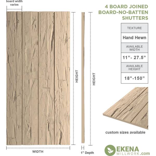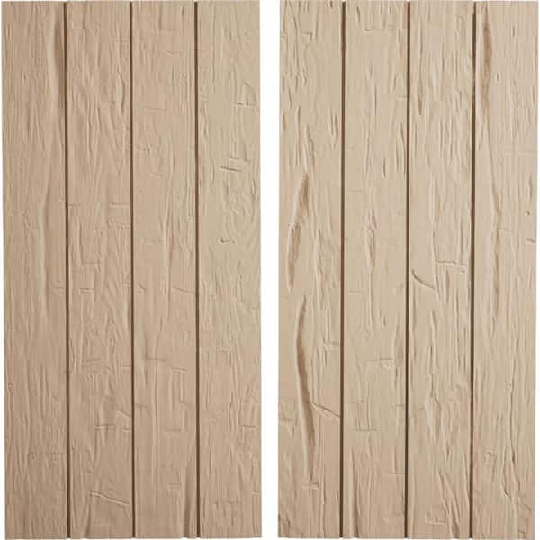 22 in. x 26 in. Timberthane Polyurethane 4-Board Joined Hand Hewn Faux Wood Board-n-Batten Shutters, No Batten Pair