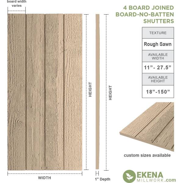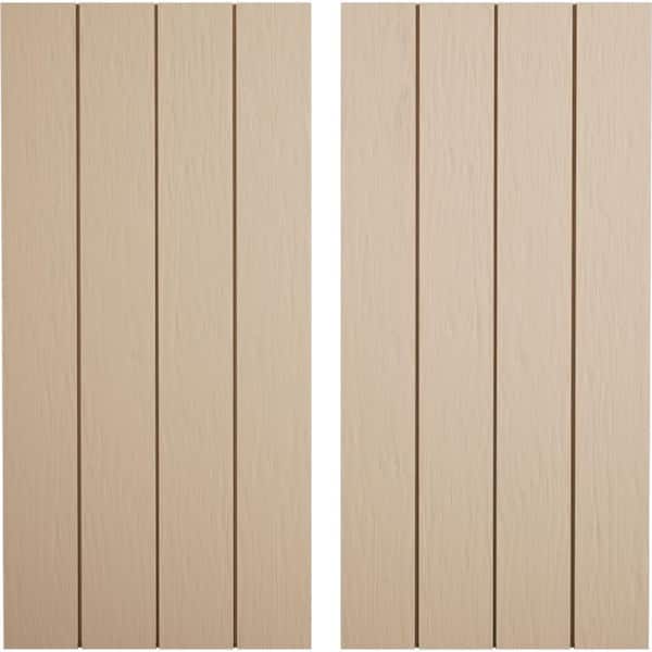 22 in. x 30 in. Timberthane Polyurethane 4-Board Joined Board-n-Batten Rough Sawn Faux Wood Shutters, No Batten Pair