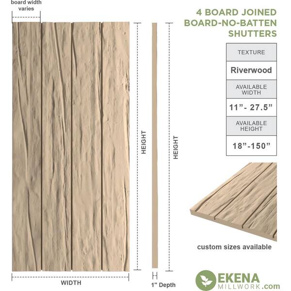 22 in. x 34 in. Timberthane Polyurethane 4-Board Joined Board-n-Batten Riverwood Faux Wood Shutters, No Batten Pair