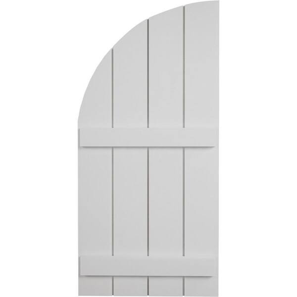 22 in. x 38 in. Polyurethane Smooth Four Board Join.ed Board-n-Batten Quarter Arch Top Shutters Primed Tan
