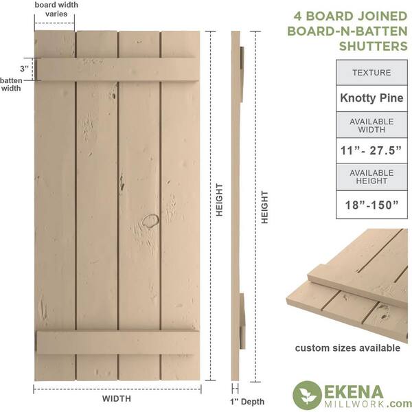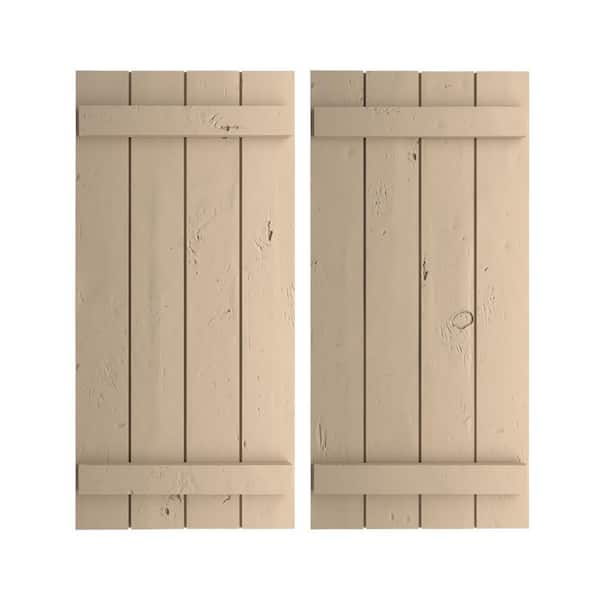 22 in. x 38 in. Timberthane Polyurethane 4-Board Joined Board-n-Batten Knotty Pine Faux Wood Shutters Pair