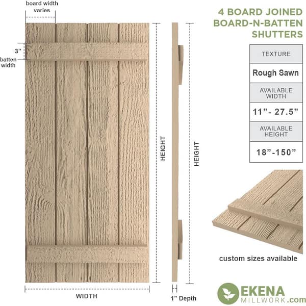22 in. x 50 in. Timberthane Polyurethane 4-Board Joined Board-n-Batten Rough Sawn Faux Wood Shutters Pair