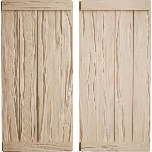 22 in. x 60 in. Timberthane Polyurethane 4-Board Joined Board-n-Batten Riverwood Faux Wood Shutters, End Batten Pair