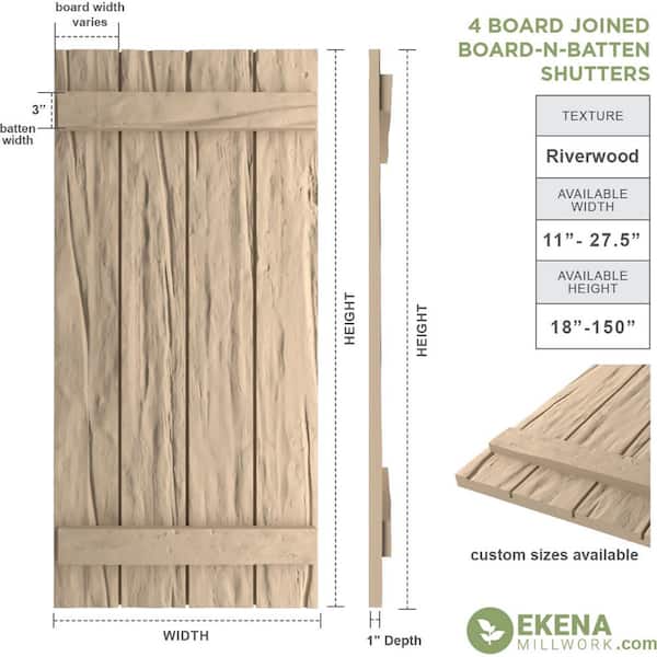 22 in. x 70 in. Timberthane Polyurethane 4-Board Joined Board-n-Batten Riverwood Faux Wood Shutters Pair