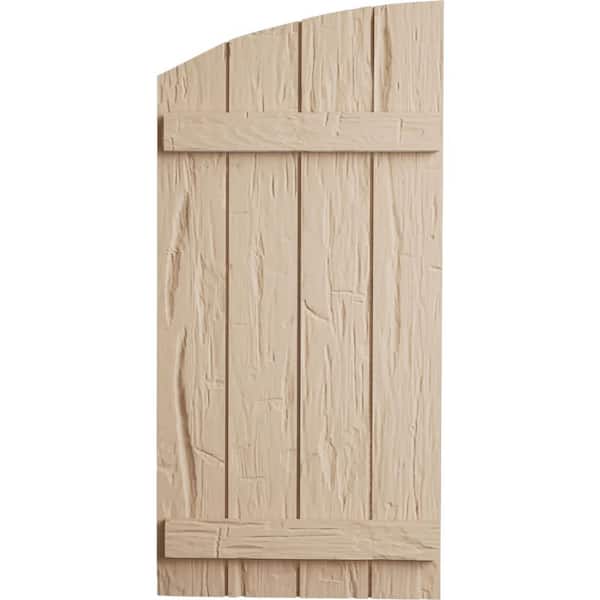 22 in. x 72 in. Polyurethane Hand Hewn 4-Board Joined Board and Batten Elliptical Top Faux Wood Shutters Primed Tan