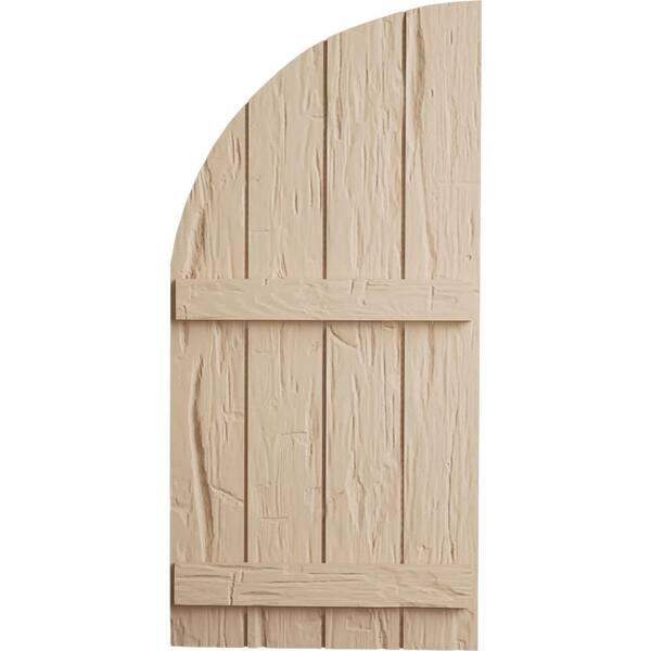 22 in. x 72 in. Polyurethane Hand Hewn Four Board Joined Board-n-Batten Quarter Arch Top Shutters Primed Tan