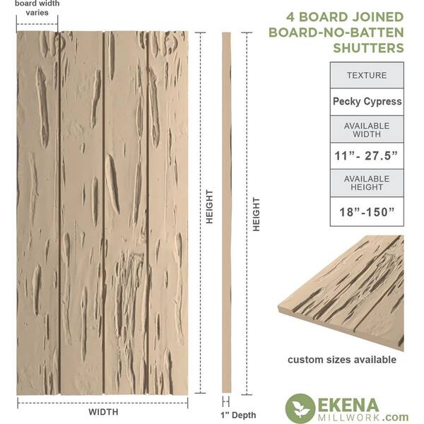 22 in. x 76 in. Timberthane Polyurethane 4-Board Joined Board-n-Batten Pecky Cypress Faux Wood Shutters, No Batten Pair
