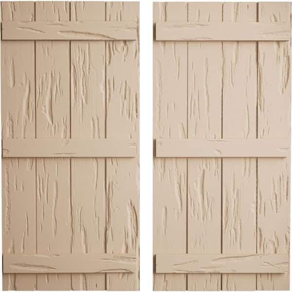 22 in. x 78 in. Timberthane Polyurethane 4-Board Joined Board-n-Batten Pecky Cypress Faux Wood Shutters Pair