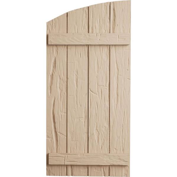22 in. x 80 in. Polyurethane Hand Hewn 4-Board Joined Board and Batten Elliptical Top Faux Wood Shutters Primed Tan