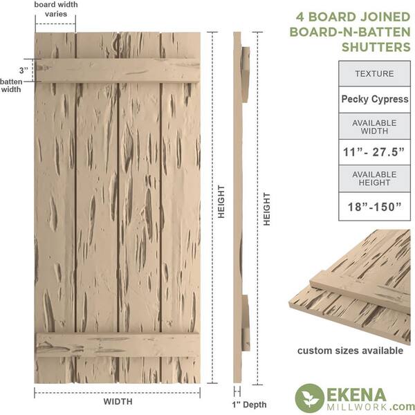 22 in. x 82 in. Timberthane Polyurethane 4-Board Joined Board-n-Batten Pecky Cypress Faux Wood Shutters Pair