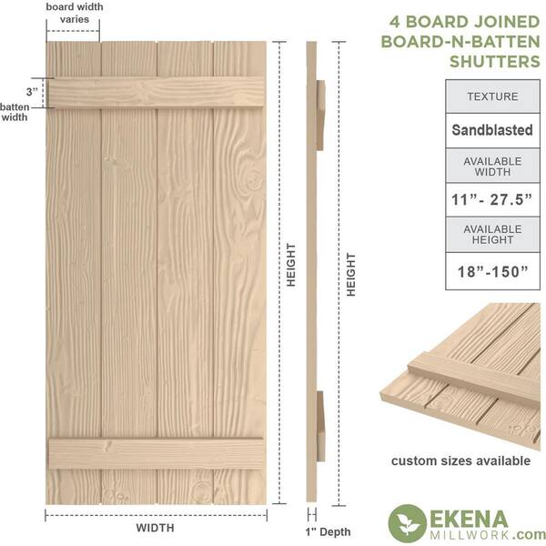 22 in. x 90 in. Timberthane Polyurethane 4-Board Joined Board-n-Batten Sandblasted Faux Wood Shutters Pair