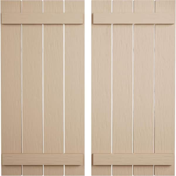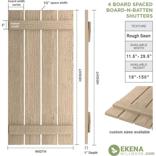 23.5 in. x 26 in. Timberthane Polyurethane 4-Board Spaced Board-n-Batten Rough Sawn Faux Wood Shutters Pair
