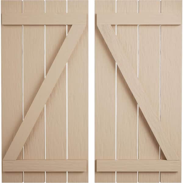 23.5 in. x 36 in. Timberthane Polyurethane 4-Board Spaced Board-n-Batten Rough Sawn Faux Wood Shutters w/Z-Board Pair
