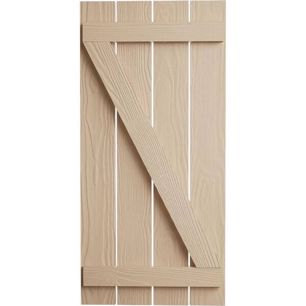 23.5 in. x 38 in. Timberthane Polyurethane 4-Board Spaced Board-n-Batten Sandblasted Faux Wood Shutters w/Z-Board Pair