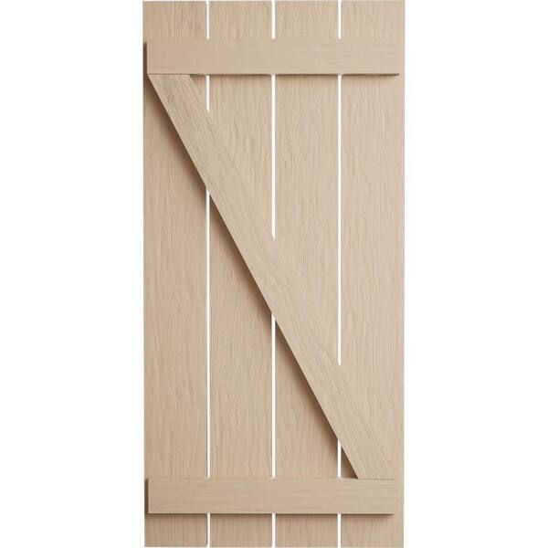23.5 in. x 40 in. Timberthane Polyurethane 4-Board Spaced Board-n-Batten Rough Sawn Faux Wood Shutters w/Z-Board Pair