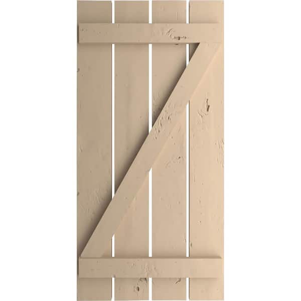 23.5 in. x 46 in. Timberthane Polyurethane 4-Board Spaced Board-n-Batten Knotty Pine Faux Wood Shutters w/Z-Board Pair