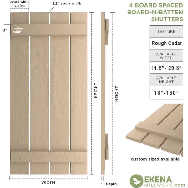23.5 in. x 48 in. Timberthane Polyurethane 4-Board Spaced Board-n-Batten Rough Cedar Faux Wood Shutters Pair