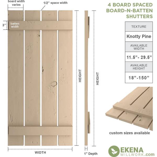 23.5 in. x 54 in. Timberthane Polyurethane 4-Board Spaced Board-n-Batten Knotty Pine Faux Wood Shutters Pair