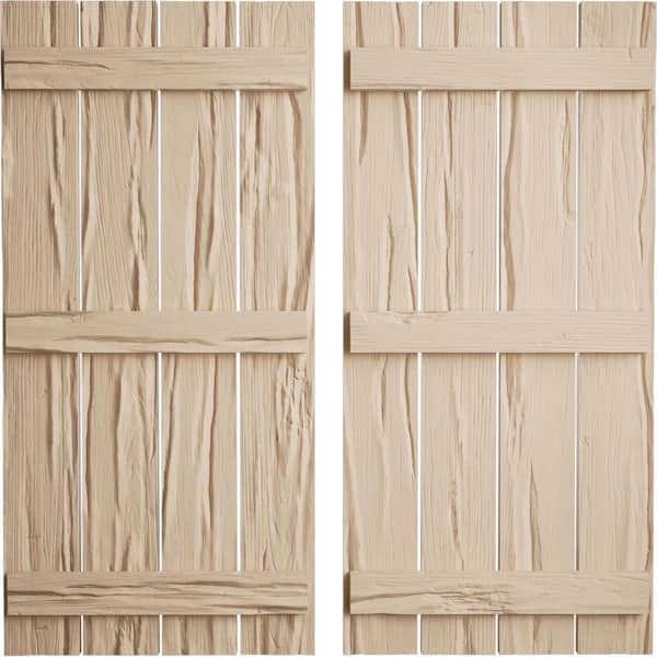 23.5 in. x 60 in. Timberthane Polyurethane 4-Board Spaced Board-n-Batten Riverwood Faux Wood Shutters Pair