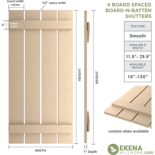 23.5 in. x 68 in. Timberthane Polyurethane 4-Board Spaced Board-n-Batten Smooth Faux Wood Shutters Pair