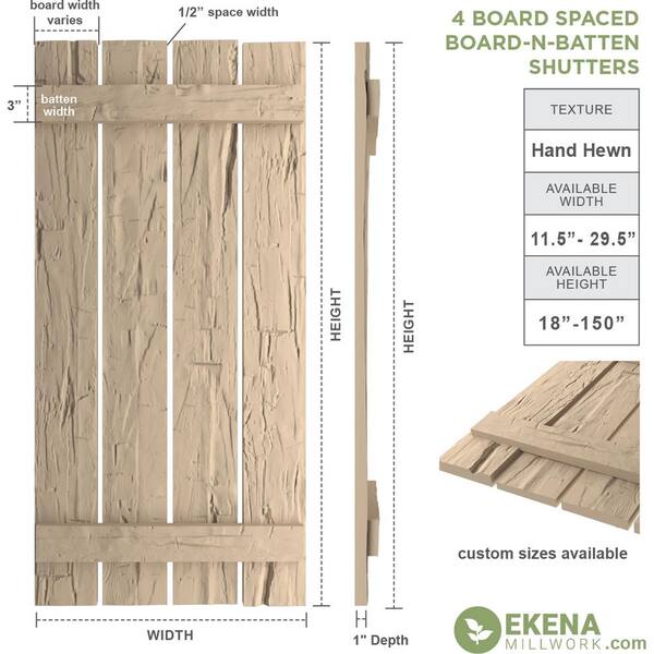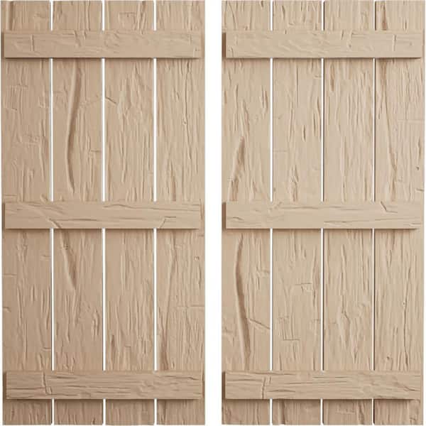 23.5 in. x 80 in. Timberthane Polyurethane 4-Board Spaced Board-n-Batten Hand Hewn Faux Wood Shutters Pair