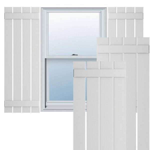 23 in. x 33 in. True Fit PVC 4-Board Spaced Board and Batten Shutters Pair in Unfinished