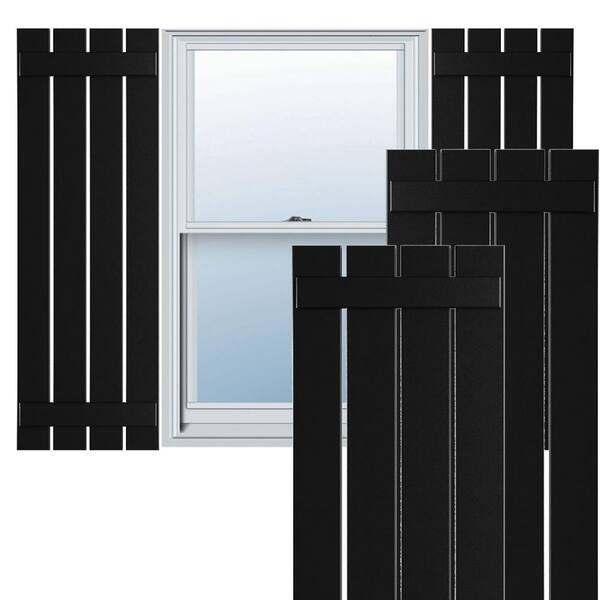 23 in. x 36 in. True Fit PVC 4-Board Spaced Board and Batten Shutter Pair in Black