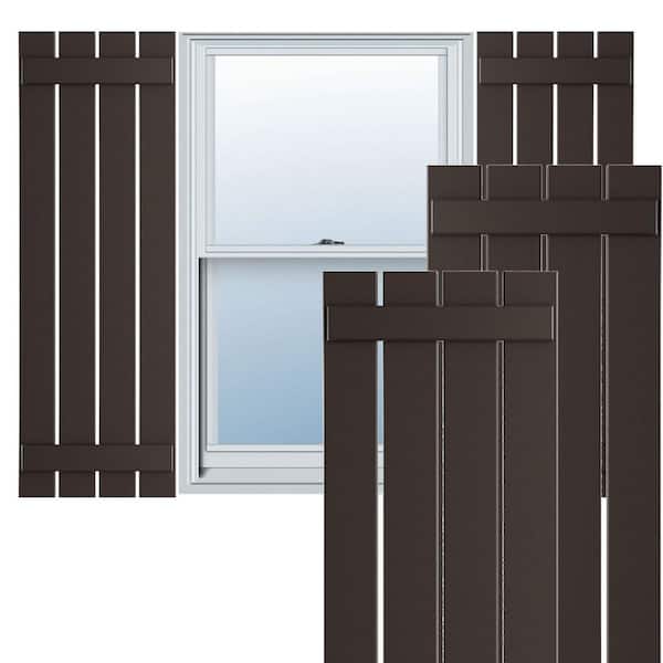 23 in. x 54 in. True Fit PVC Four Board Spaced Board and Batten Shutters Pair in Raisin Brown
