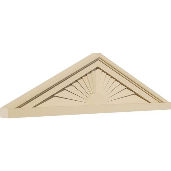 26 in. W x 7-1/2 in. H x 2 in. P (Pitch 6/12) Peaked Cap Sunburst Signature Urethane Pediment, Primed Tan