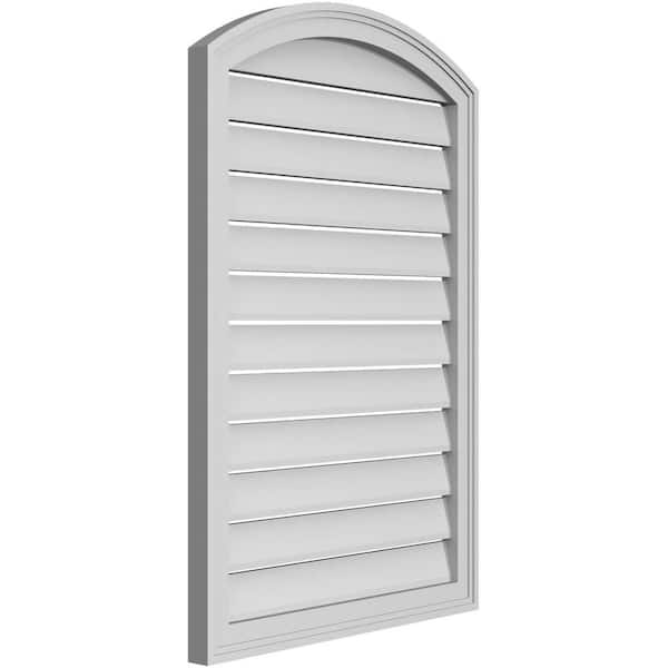 26 in. x 36 in. Arch Top Surface Mount PVC Gable Vent: Decorative with Brickmould Frame