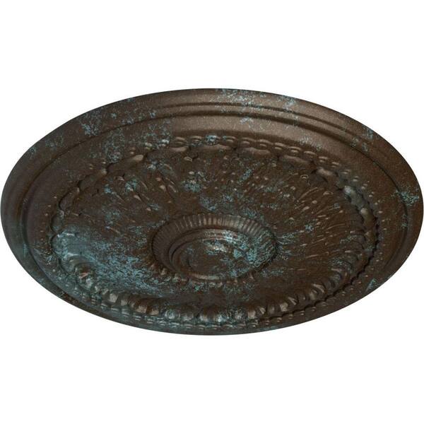27" x 2-1/2" Brunswick Urethane Ceiling Medallion (Fits Canopies up to 4-1/2"), Hand-Painted Bronze Blue Patina