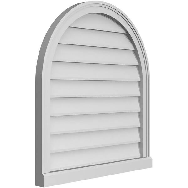 28 in. x 30 in. Round Top Surface Mount PVC Gable Vent: Decorative with Brickmould Sill Frame