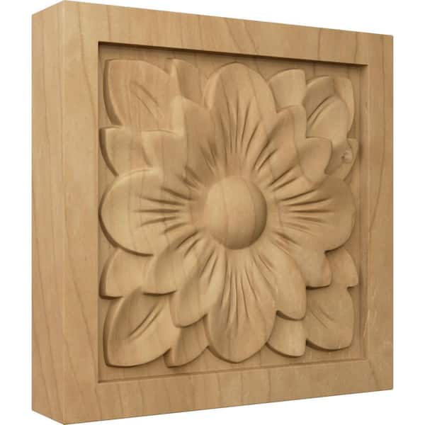 3/4 in. x 3-1/2 in. x 3-1/2 in. Unfinished Wood Maple Medium Dogwood Flower Rosette