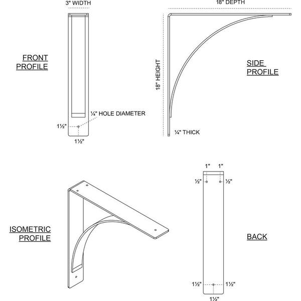 3 in. W x 18 in. H x 18 in. D Hammered Gray Morris Steel Bracket