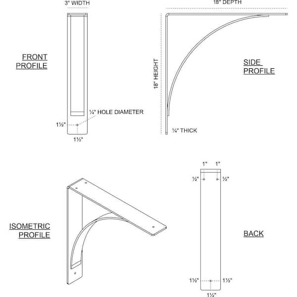 3 in. W x 18 in. H x 18 in. D Hammered White Morris Steel Bracket