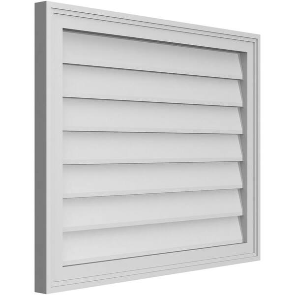 30 in. x 24 in. Vertical Surface Mount PVC Gable Vent: Decorative with Brickmould Frame