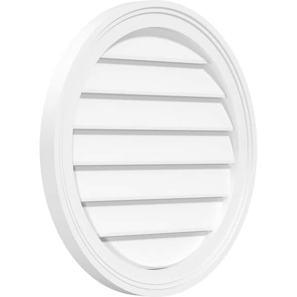 30 in. x 30 in. Round Surface Mount PVC Gable Vent: Functional with Brickmould Frame
