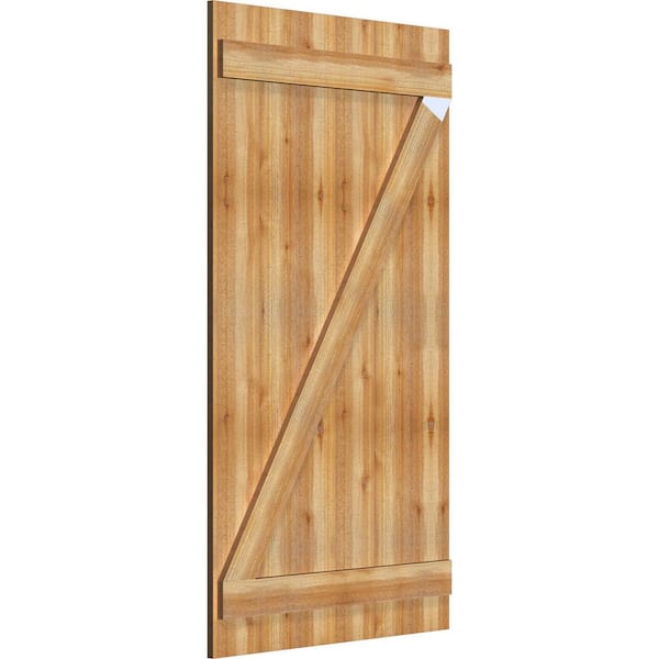 32-1/4" X 59"Timbercraft Rustic Wood Six 5-3/8"Joined Board and Batten Shutters with Z-Bar Rough Sawn Cedar(pair)