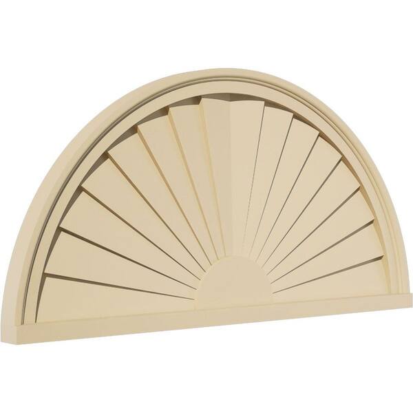 32 in. W x 16 in. H x 2 in. P Half Round Sunburst Signature Urethane Pediment, Primed Tan