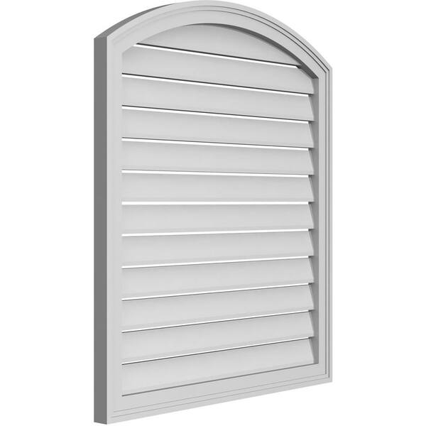 32 in. x 34 in. Arch Top Surface Mount PVC Gable Vent: Decorative with Brickmould Frame