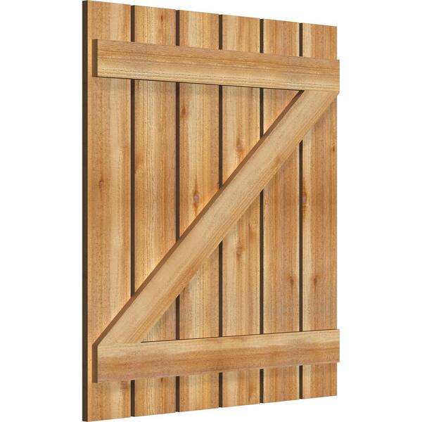 34-3/4" X 38"Timbercraft Rustic Wood Six 5-3/8"Spaced Board and Batten Shutters with Z-Bar Rough Sawn Cedar(pair)