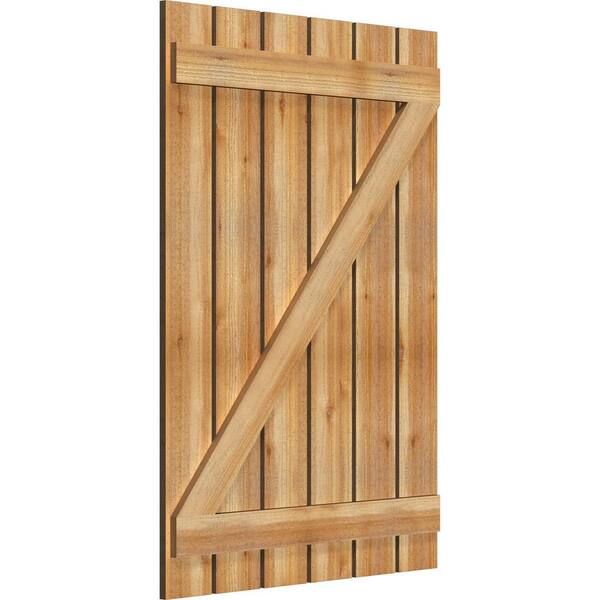 34-3/4" X 50"Timbercraft Rustic Wood Six 5-3/8"Spaced Board and Batten Shutters with Z-Bar Rough Sawn Cedar(pair)