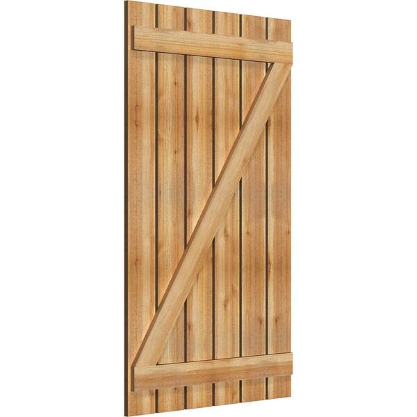 34-3/4" X 58"Timbercraft Rustic Wood Six 5-3/8"Spaced Board and Batten Shutters with Z-Bar Rough Sawn Cedar(pair)