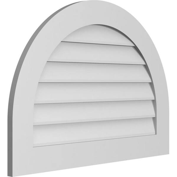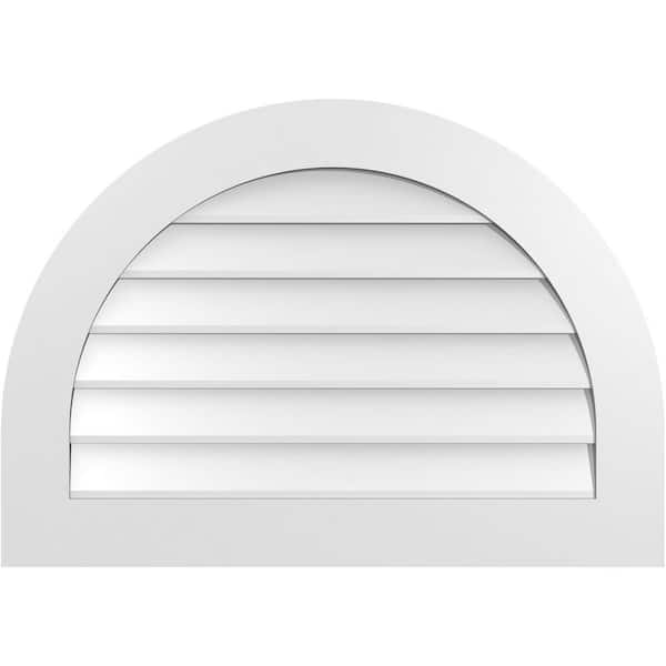 34 in. x 24 in. Round Top Surface Mount PVC Gable Vent: Decorative with Standard Frame