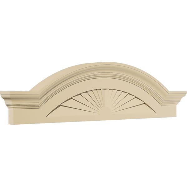 38-in. W x 10-1/2-in. H x 2-1/2-in. P Segment Arch W/Flankers Sunburst Signature Urethane Pediment, Primed Tan