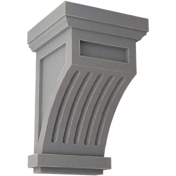 4-1/4 in. x 7 in. x 4-1/4 in. Pebble Grey Fluted Wood Vintage Decor Corbel