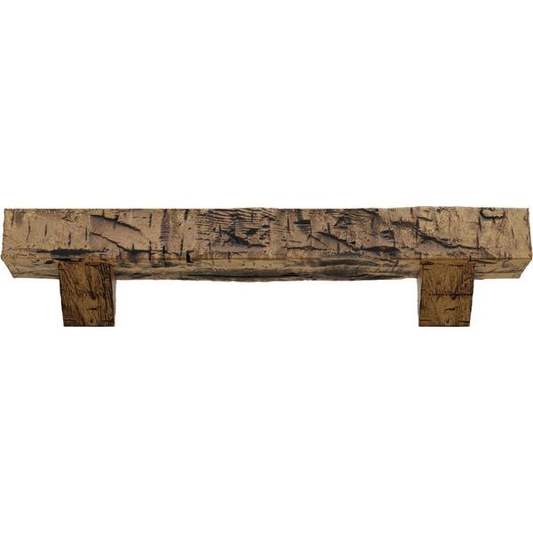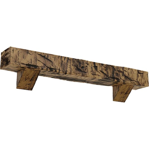 4 in. x 4 in. x 3 ft. Hand Hewn Faux Wood Fireplace Mantel Kit, Breckinridge Corbels, Natural Golden Oak