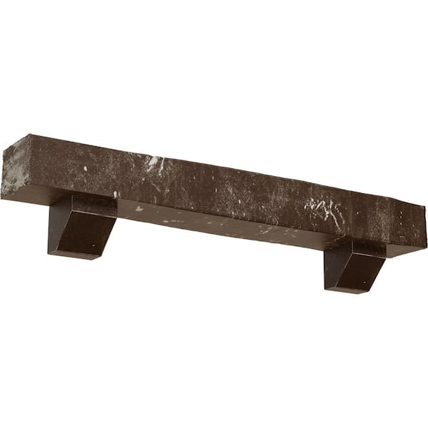 4 in. x 4 in. x 3 ft. Knotty Pine Faux Wood Fireplace Mantel Kit, Ashford Corbels, Vintage Mahogany